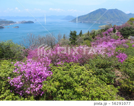 ツツジの開花を迎えた伯方島 開山公園 多々羅大橋