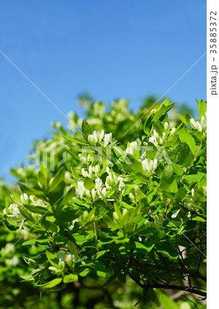青空に映えるシロバナヒョウタンボクの花