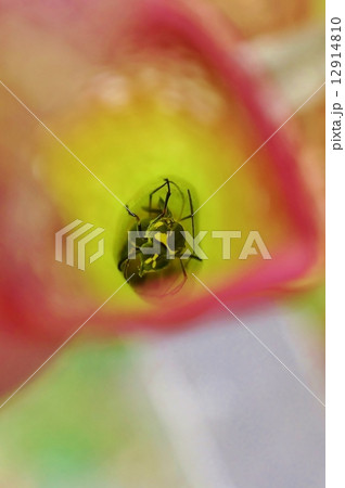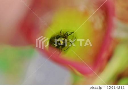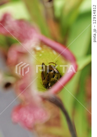 食虫植物・サラセニアの捕虫器の底に落ちた虫・縦位置
