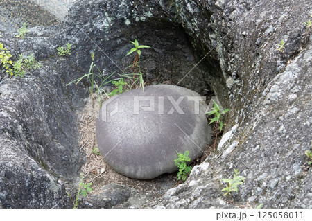 高津戸峡の甌穴:卵のように丸い石/群馬県みどり市