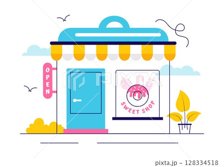 Sweet Shop Vector Illustration Featuring Sales Of Various Bakery Products Including Cupcakes Cakes Pastries And Candy In Flat Style Cartoon Background