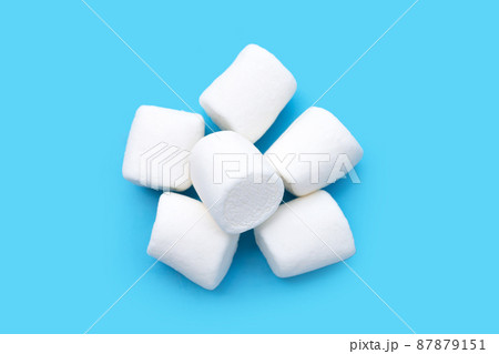 White marshmallows on blue background.