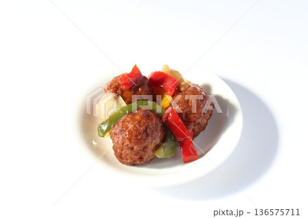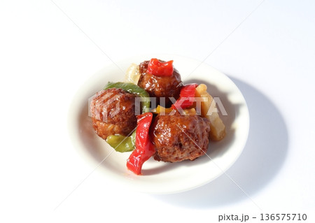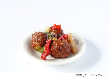 肉団子の甘酢あんかけ【白背景・切り抜き】
