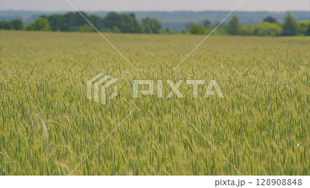 A Vibrant Wheat Field Extending Under a Beautiful Clear Sky with Bright Sunlight