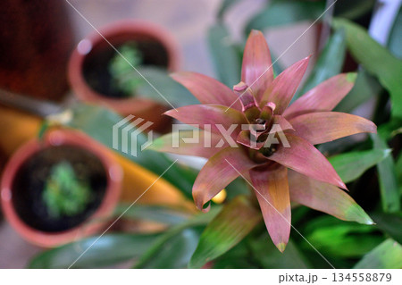 Close-up of Bromeliad with Pinkish-Red Leaves