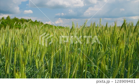 A captivating closeup view of an inspiring green wheat field showcasing vibrant life and growth