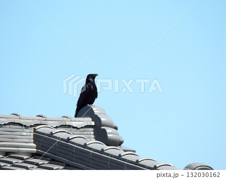 瓦にとまるカラス