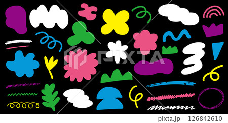 花 blob シェイプ 葉っぱ 手書き ラフ セット ベクター 抽象的な形