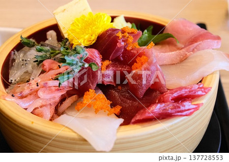 鮮度抜群の海鮮丼 桶に盛られた刺身の盛り合わせ ランチイメージ