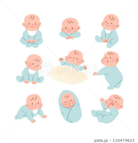 可愛的小寶寶有不同的姿勢和表情組合, 向量圖