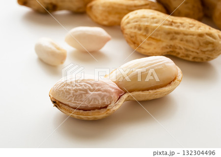 Dried peanuts on white background.