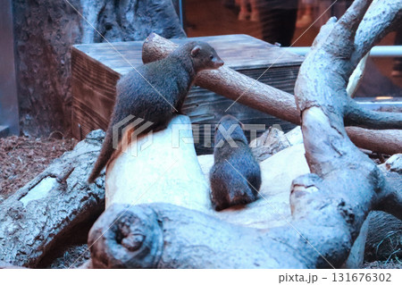 木の上から仲良く見張りをするコビトマングース