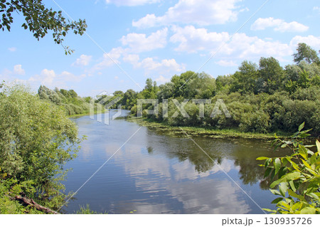 Landscape with river in summer.River Snov flowing in Chernihiv region of Ukraine