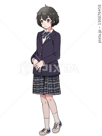 ジャージを着た臆病そうな黒髪の女の子の表情セット