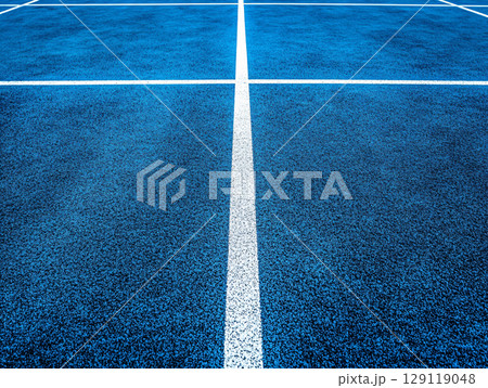 Sport field court background. Light blue and granulated ground surface with white lines. Top view. AI Generated.