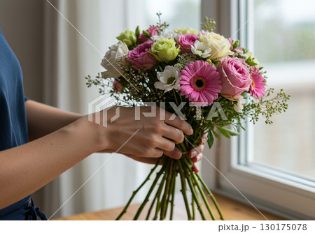 Woman arranging a beautiful bouquet of flowers