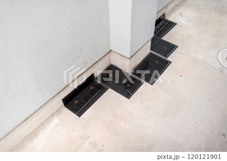 建築物の壁沿いに仕掛けられたネズミ捕り用粘着シート