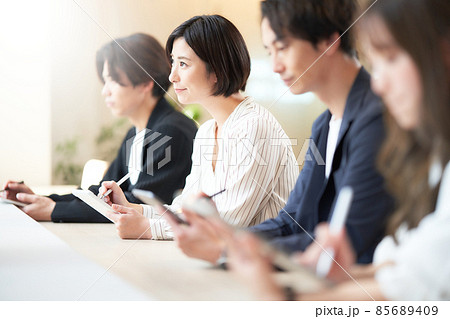 デスクに着席して前を見るビジネスパーソン セミナー 研修 ビジネス イメージ