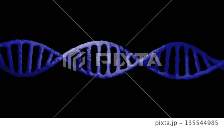 Displaying 3D DNA double helix model twisting horizontally on solid black backdrop, gradient blue