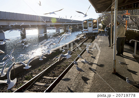 日本の横浜都市景観 地下鉄 センター南駅前のハト。突然、群れが飛来…
