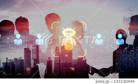 Collaborative Teamwork with Digital Technology in Modern Workspace, Focus on Team Members Joining Hands and AI Integration Concept Trope