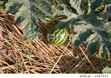 土の上を這う小玉西瓜、受粉後十六日目の生育状態