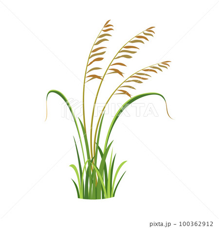 Bush of wild grass with reeds. Element of marsh vegetation. River grass. Weed vector illustration