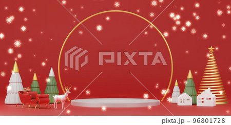 赤い背景に置かれたクリスマスシンボル / コピースペースのあるクリスマスセール・キャンペーン用背景