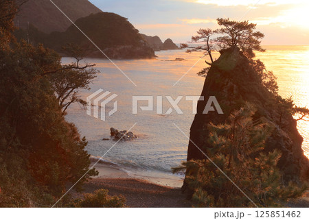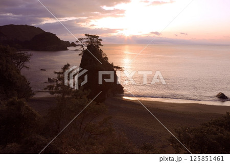日和佐、大浜海岸、朝陽に輝く海霧/アカウミガメの産卵場所/日本の渚百選/室戸阿南海岸国定公園
