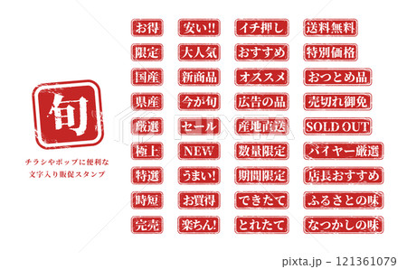 スーパーのチラシやポップに便利な販促用文字スタンプアイコンセット(ベクター・赤)