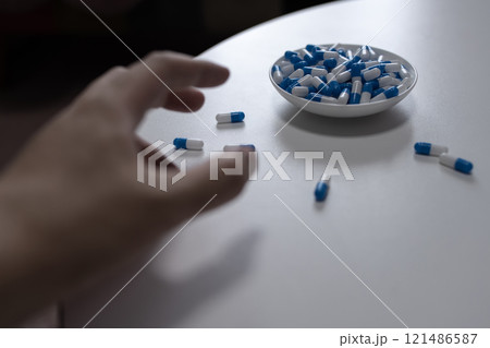 オーバードーズ ODイメージ 大量の薬を接種する手 薬物過剰摂取 ストレス 鬱病 若年層 社会問題