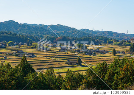 岐阜県恵那市岩村・農村景観日本一展望所から望む棚田と山里の風景