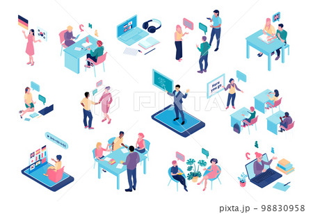 Language School Isometric Color Set