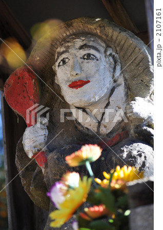 鹿児島県内には、豊作を祈願する田の神が約2500体あり、笑顔の田の神は珍しい。