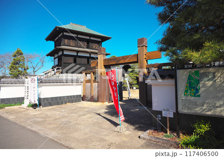「史跡 田中城下屋敷」と書かれた門(静岡県藤枝市)