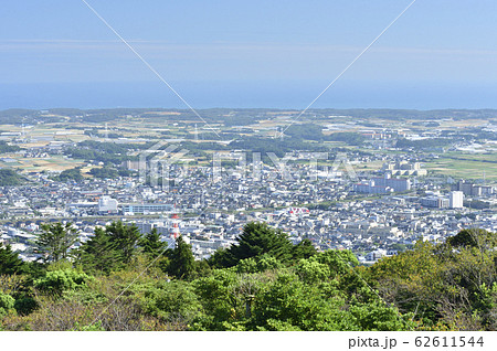 朝焼けの空 街のシルエット 蔵王山展望台より
