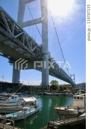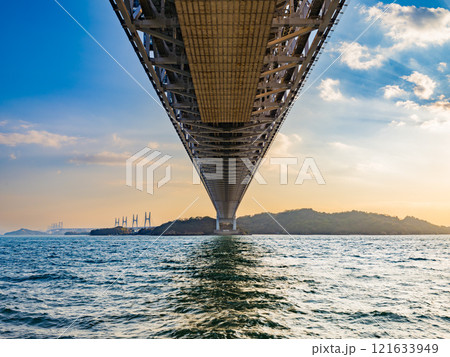 瀬戸内海の島へと繋がる瀬戸大橋の真下からの眺め