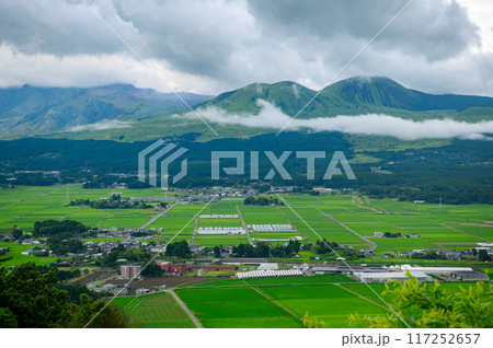 《熊本県》青空と阿蘇谷の田園風景・田子山展望所