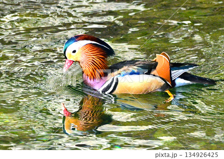 美しい羽色を持つオシドリ