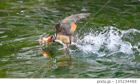 オシドリの羽ばたき