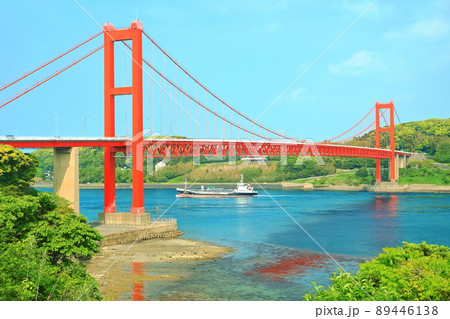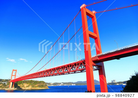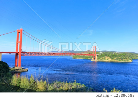 【長崎県】晴天の平戸大橋(平戸瀬戸)