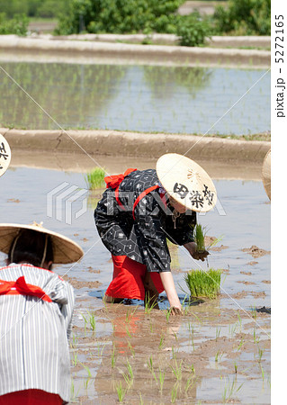 お田植えをする女性 田植え衣装 古式スタイルでの田植え 御田植祭 日本の原風景 イメージ素材