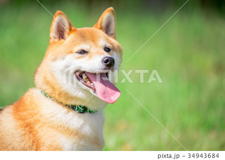 緑背景に柴犬 飼い犬 日本犬 一般的な犬 散歩 遊ぶ