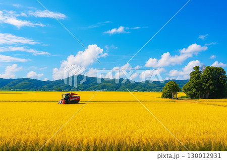 秋に収穫された新米と炊きたてのご飯。白米と稲穂