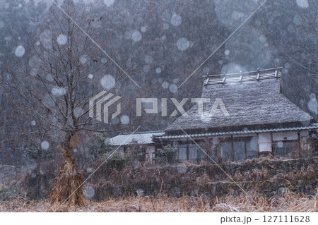 京都府南丹市美山町雪積もるかやぶきの里の撮影したもの
