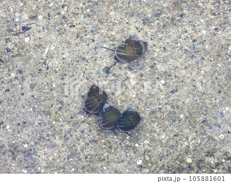 川の中にいるタニシのイメージ素材