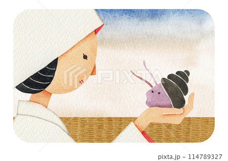 日本昔話 たにし長者 水彩 イラスト
