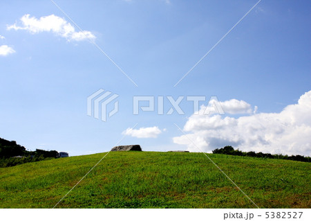 丘と白い雲が浮かぶ空