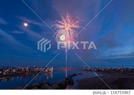 《神奈川県》鎌倉花火大会・海上に打ち上がる花火