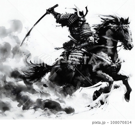 馬上で太刀を振るう甲冑をまとった武士-Generative AI